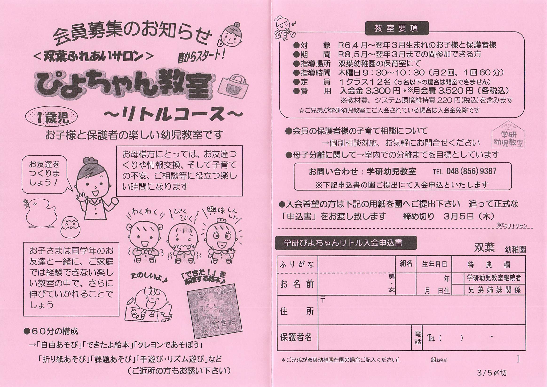 ※本教室は双葉幼稚園への入園をお約束頂くものではございませんので、対象の年齢のお子様であればどなたでもご入会いただけます
